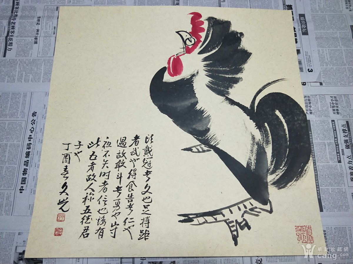 中国美协书画名家张文光精美大写意卡纸画作《五德鸡》