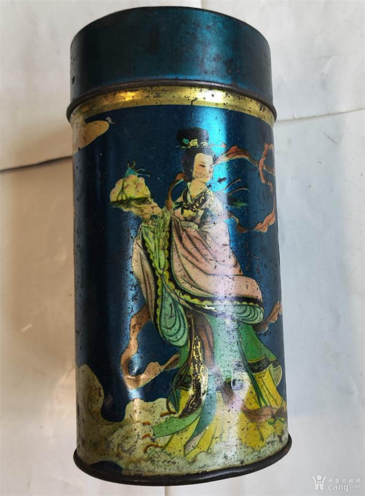 美女献寿图山茶牌铁皮老茶叶盒.高15厘米