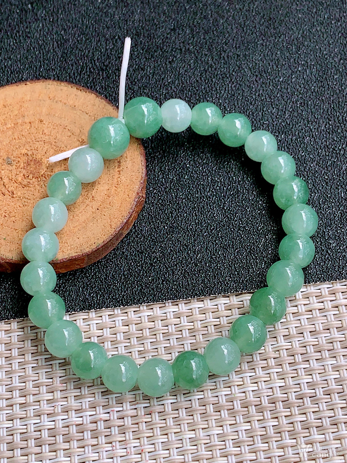 缅甸天然翡翠A货冰透水润满绿圆珠手串