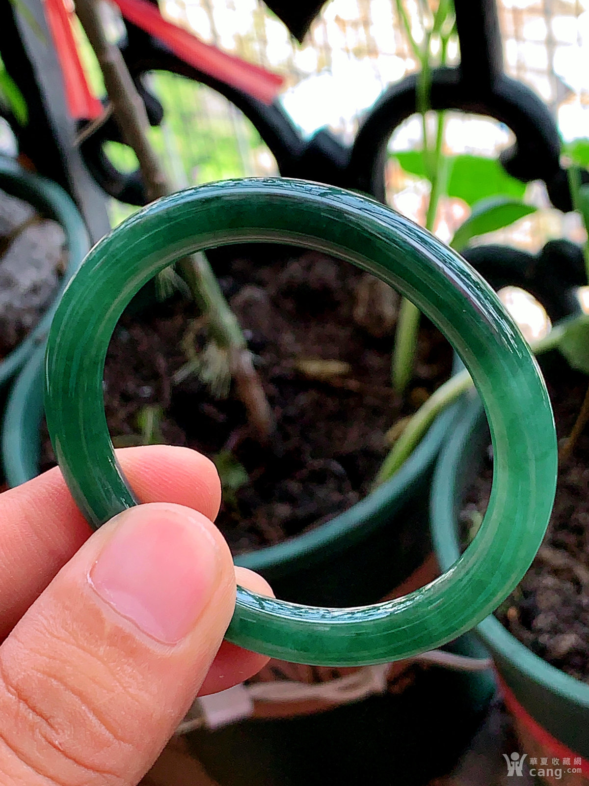 缅甸天然翡翠A货冰润满绿圆条手镯52圈口