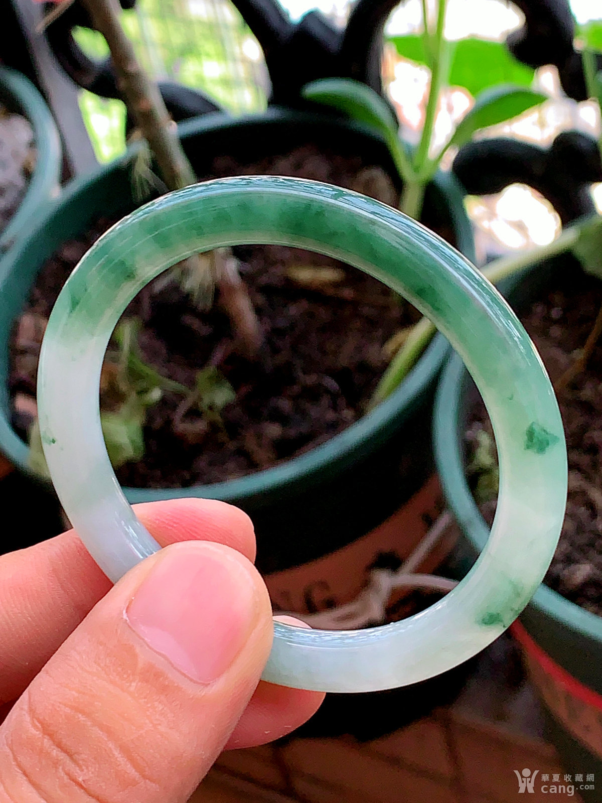 缅甸天然翡翠A货冰透水润飘花圆条手镯53.3圈口