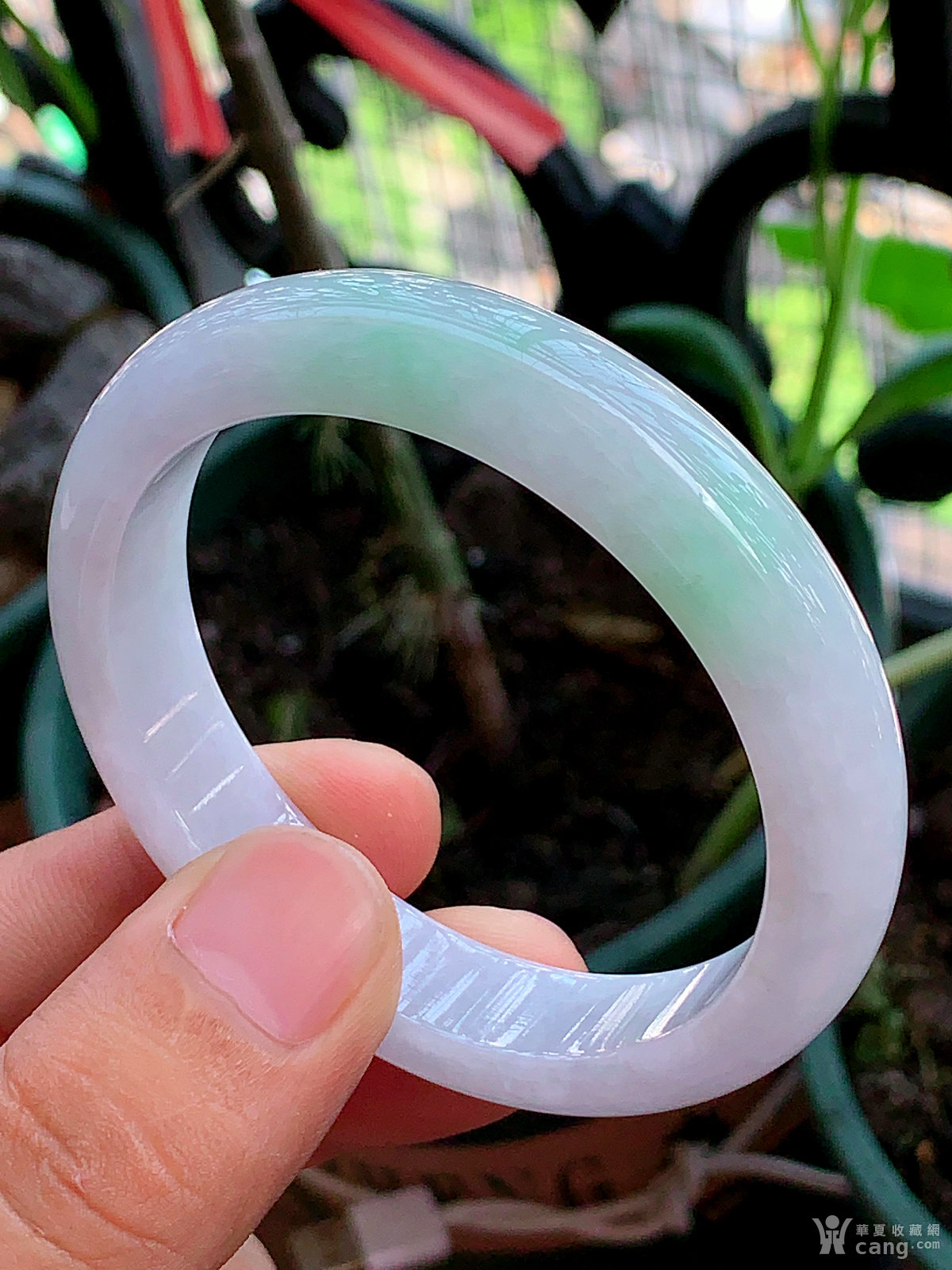 缅甸天然翡翠A货冰润飘花宽边手镯56.6圈口