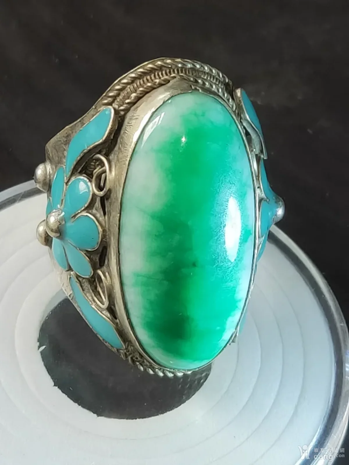 清代翡翠戒指,冰种阳绿,尺寸3.5-3.1厘米,包老保真