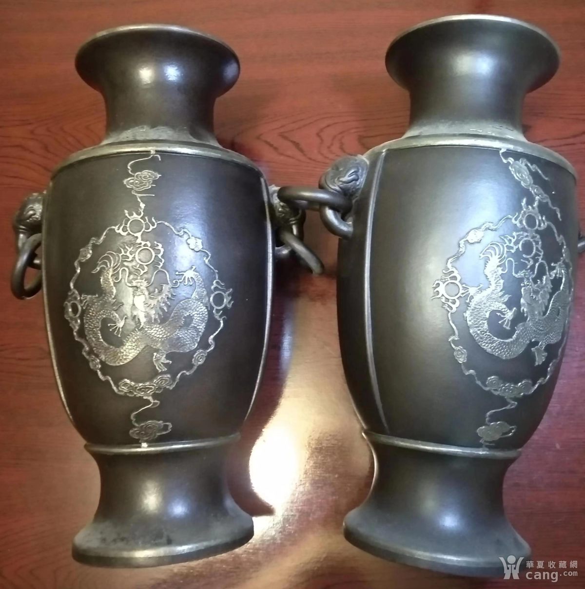 铜龙纹双耳赏瓶一对7626-6