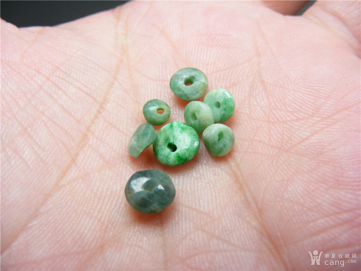 4老坑A货翡翠花片几十年前老改的随型带孔白底青小米珠8个