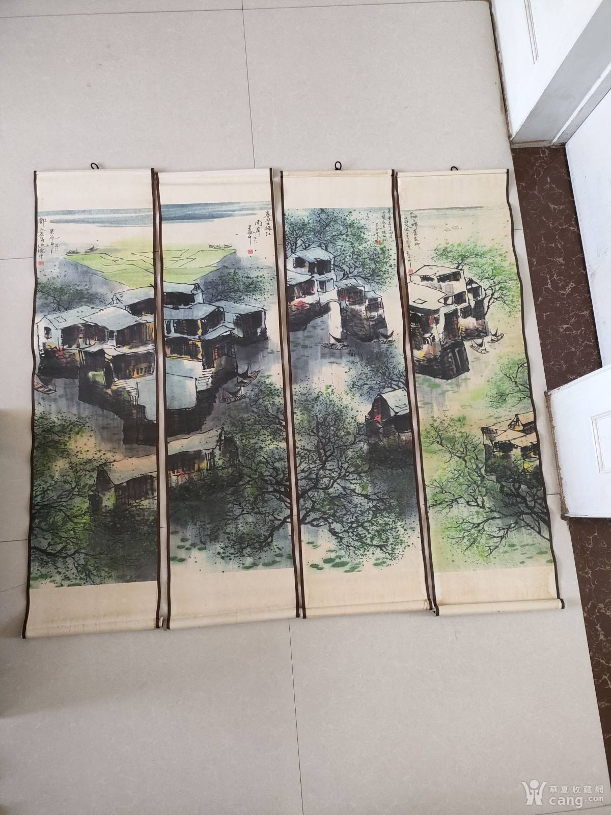 一九八八年的手绘粉彩山水画四副一套