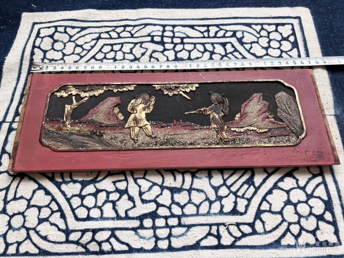 清代老花板木雕板一片铺砂描金婴戏