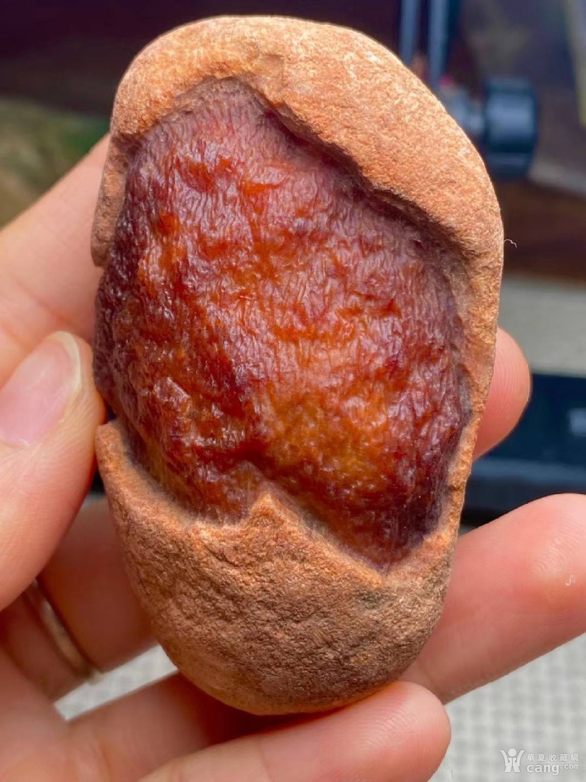 157克。老坑达马砍开窗冰红翡。种老,肉质细腻。种水通透,
