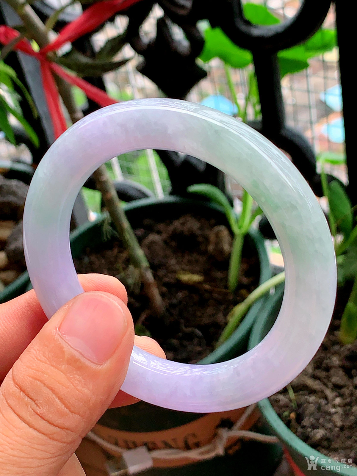 缅甸天然翡翠A货冰透水润春带彩圆条手镯57.5圈口