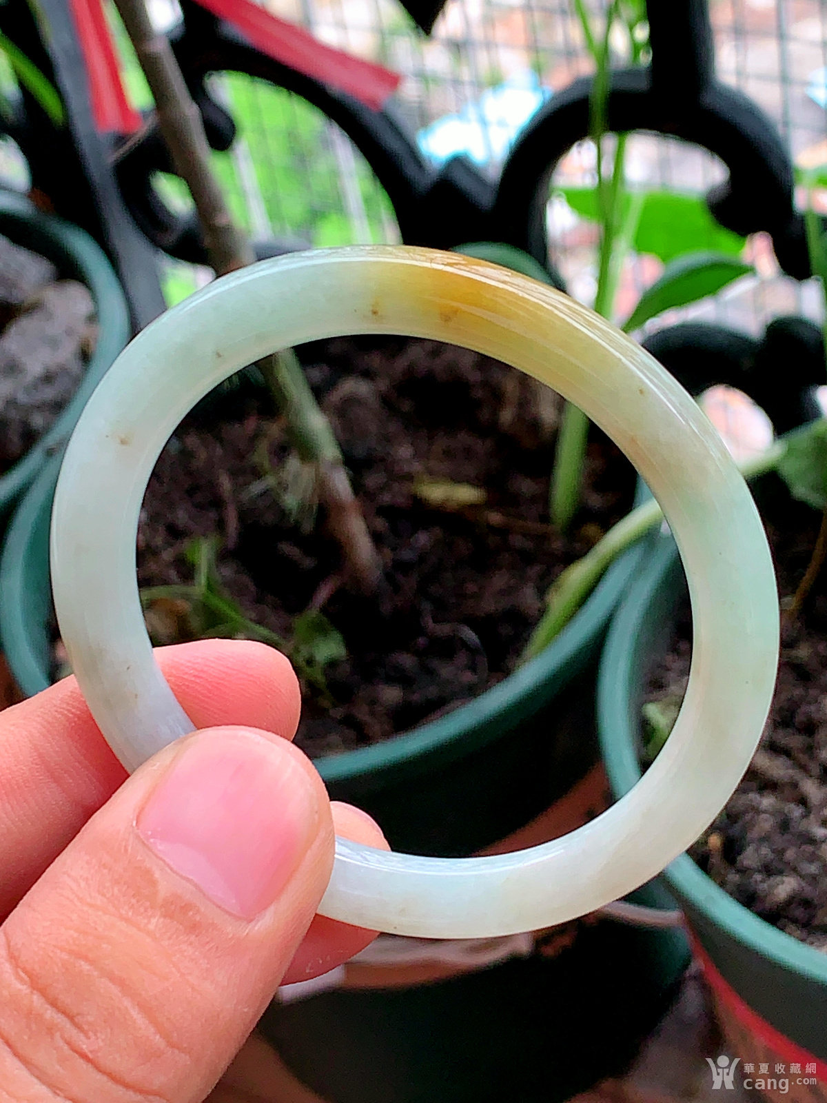 缅甸天然翡翠A货冰润飘黄翡圆条手镯53圈口