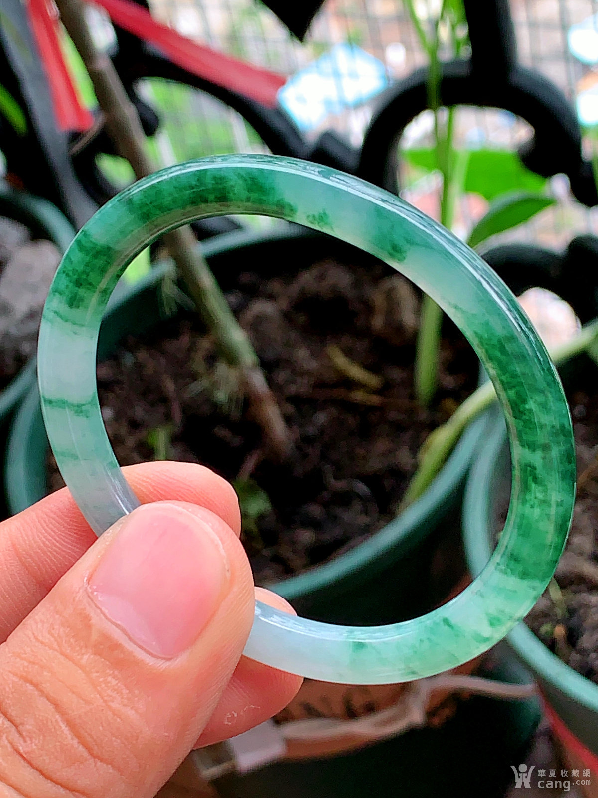 缅甸天然翡翠A货冰透水润飘花圆条贵妃手镯52.3圈口