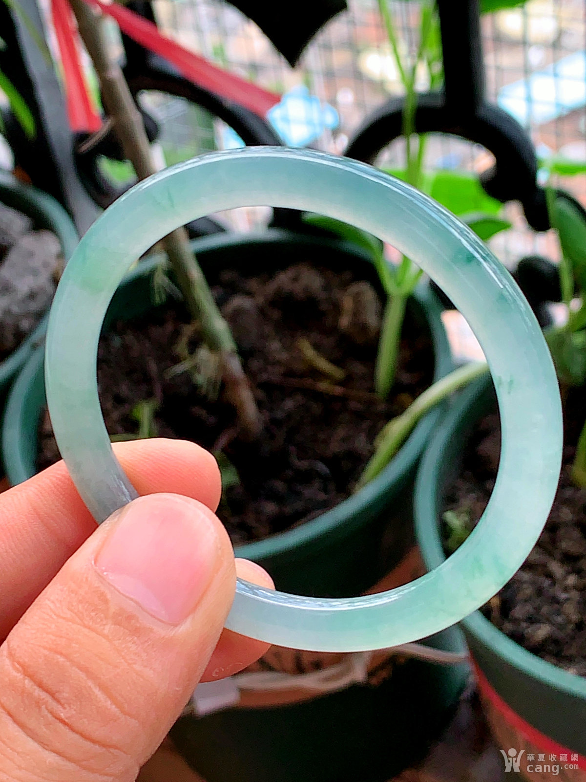 缅甸天然翡翠A货冰透水润飘花圆条手镯56圈口