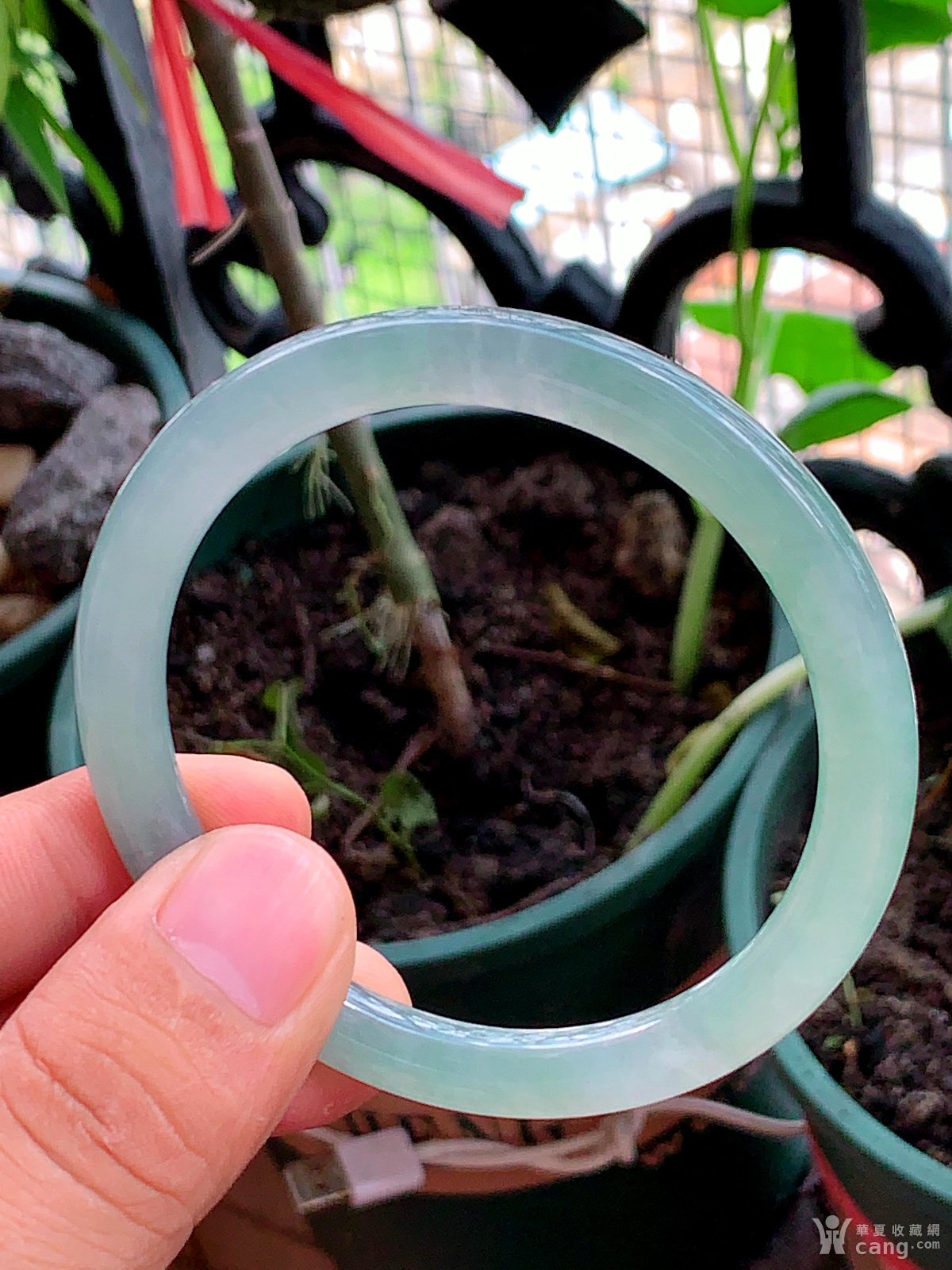 缅甸天然翡翠A货冰透水润飘花圆条手镯60.5圈口