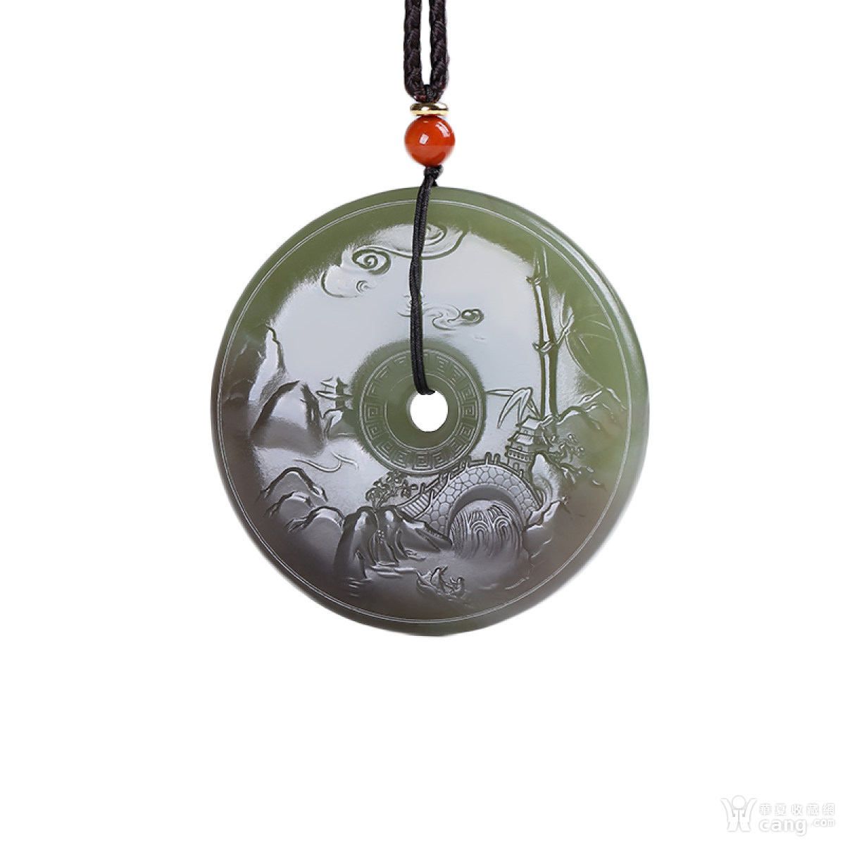 [锦绣山河]王朝安和田玉青白玉烟紫山水圆牌子挂件59.40g