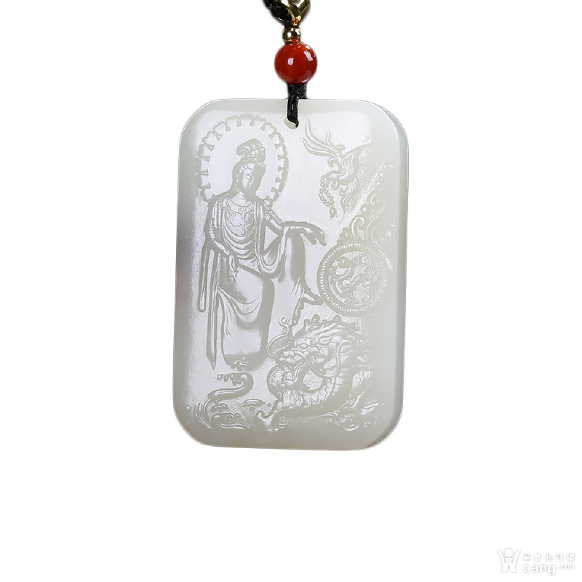 [羊脂白玉]和田玉糖白玉普渡众生观音莲花祥龙祥凤牌子45.6