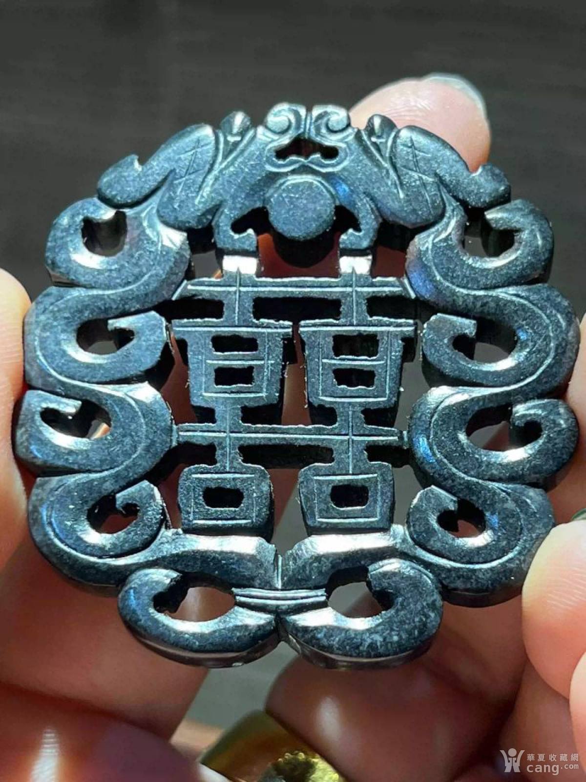 双面透雕囍字牌“过火黑沁” 尺寸5.6*5*0.6