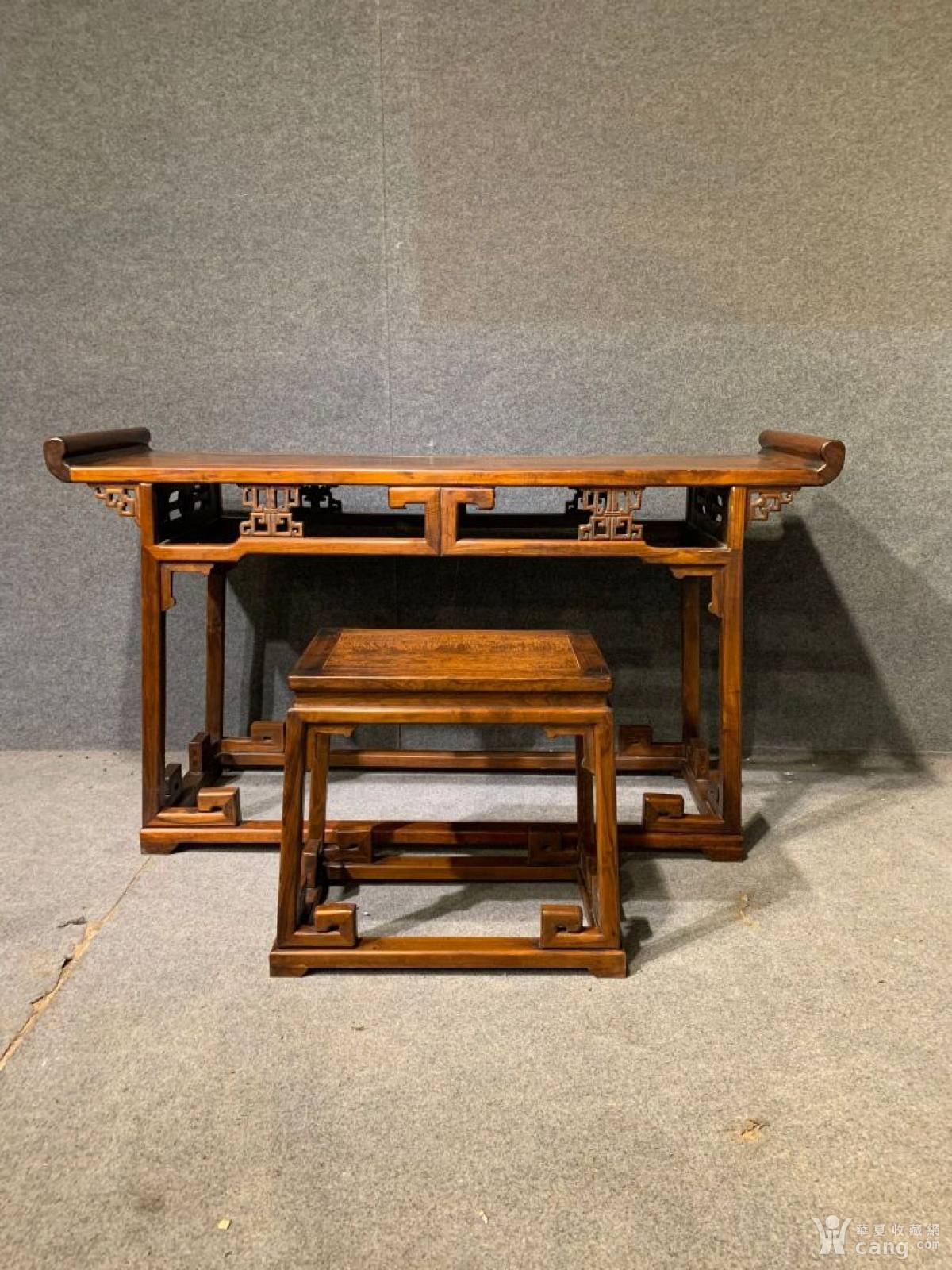 精品黄花梨休闲琴桌,款式经典大方。桌面鬼脸花纹清晰漂亮,包浆