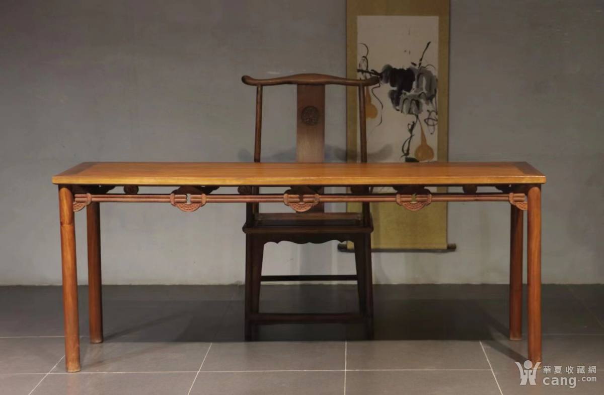 【文房 书案】 此案圆腿,四面拉钱工艺 全品牢固, 材质花梨