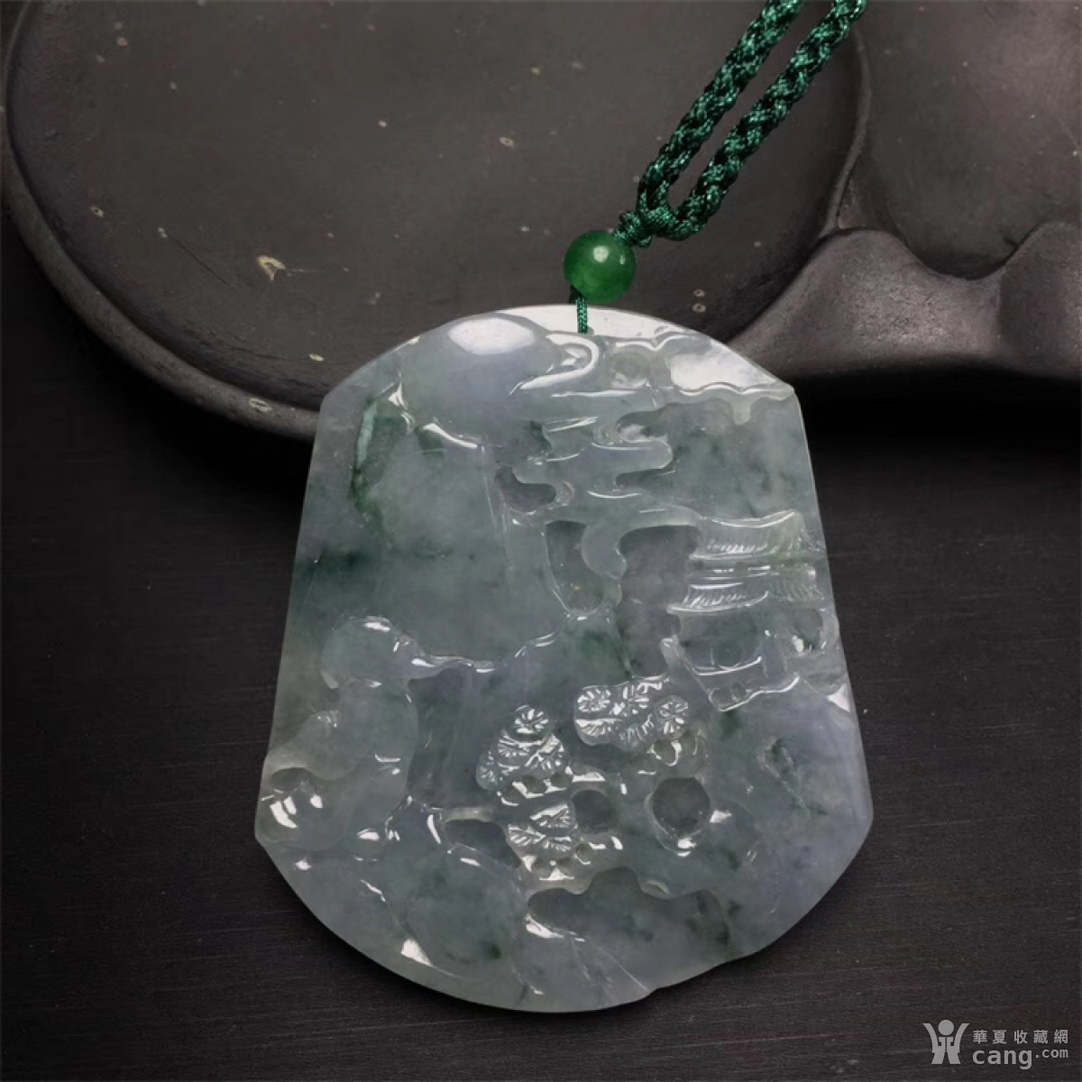 M481创汇期糯冰种飘花翡翠人物山水牌
