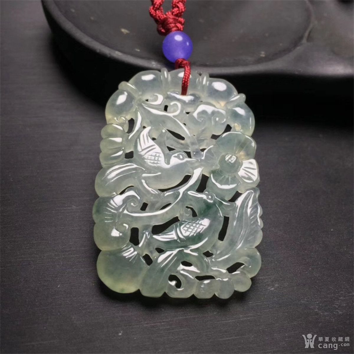 V804回流老库存高冰种飘蓝花翡翠喜上眉梢挂佩