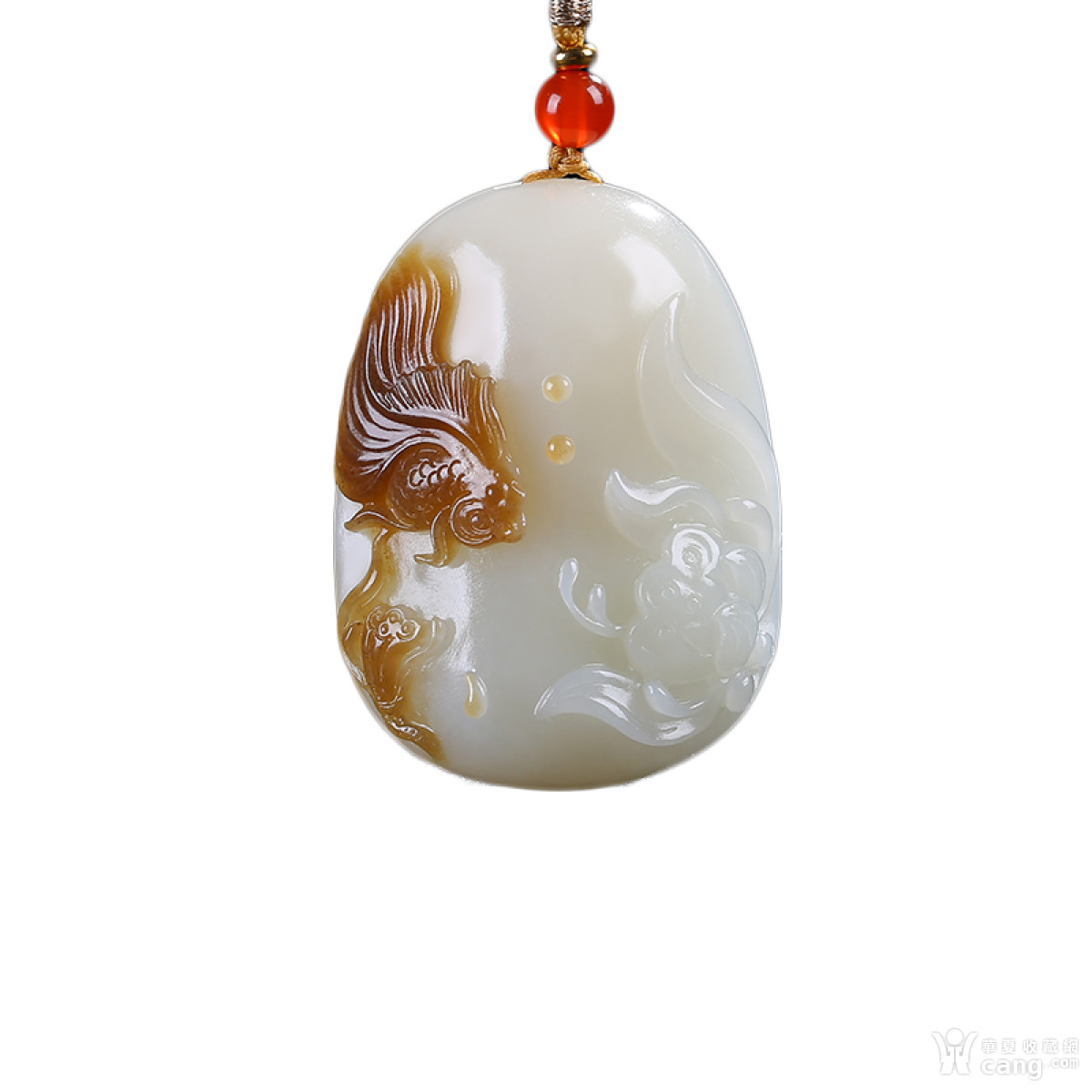 [羊脂白玉]王朝安和田玉糖白玉金玉满堂金鱼莲花46.88g