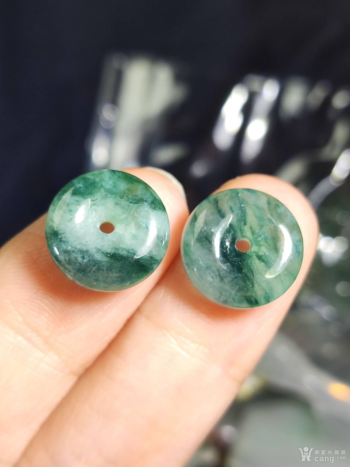翡翠飘蓝花对扣