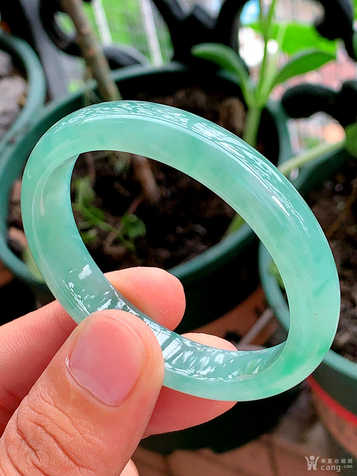 缅甸天然翡翠A货冰透水润满绿贵妃手镯53.8圈口