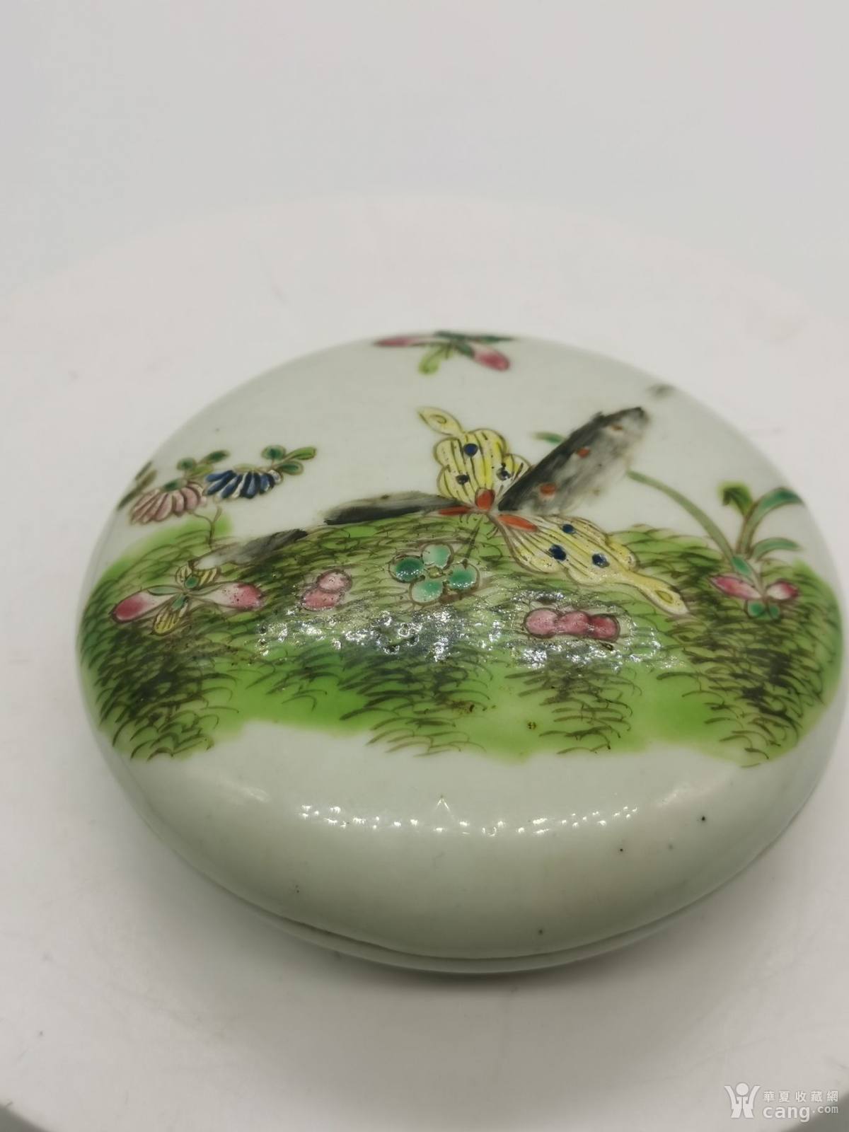 民国粉彩蝶恋花文房印泥盒