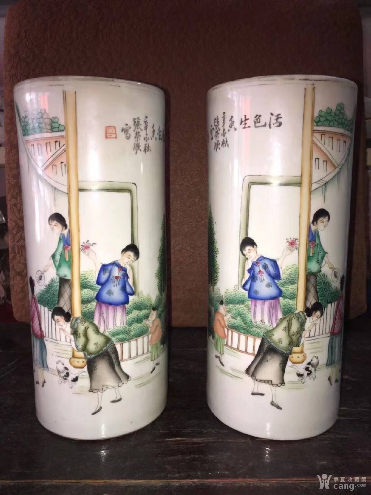 民国时期小脚美人帽筒,画工好,图案漂亮,名家作,收藏佳品