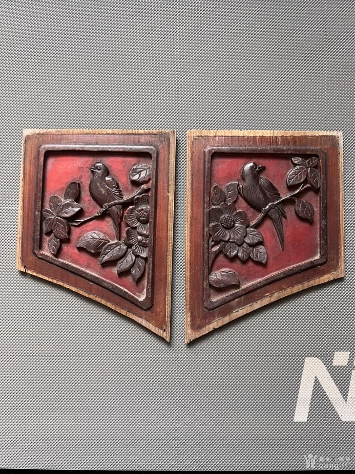 老花板木雕二片花鸟