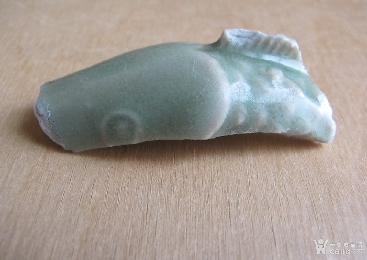 特价 元代 龙泉窑鱼形砚滴上的残片 瓷塑粉青釉 标本