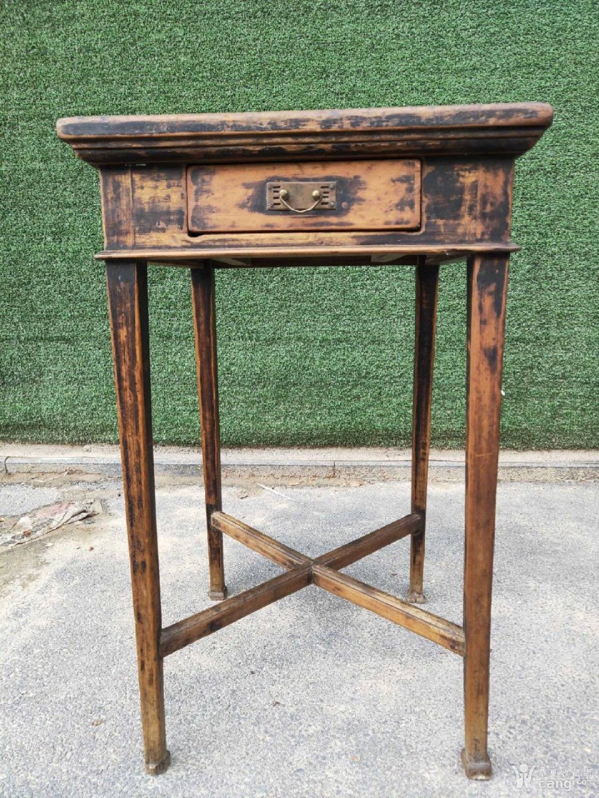 清代柏木镶大理石花架一支, 到代老货包浆一流,结实牢固,完整