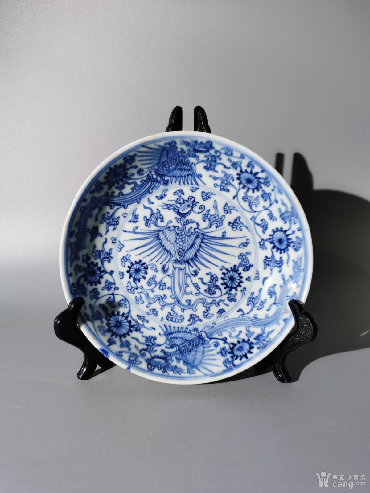 雍正细路青花缠枝团凤纹盘