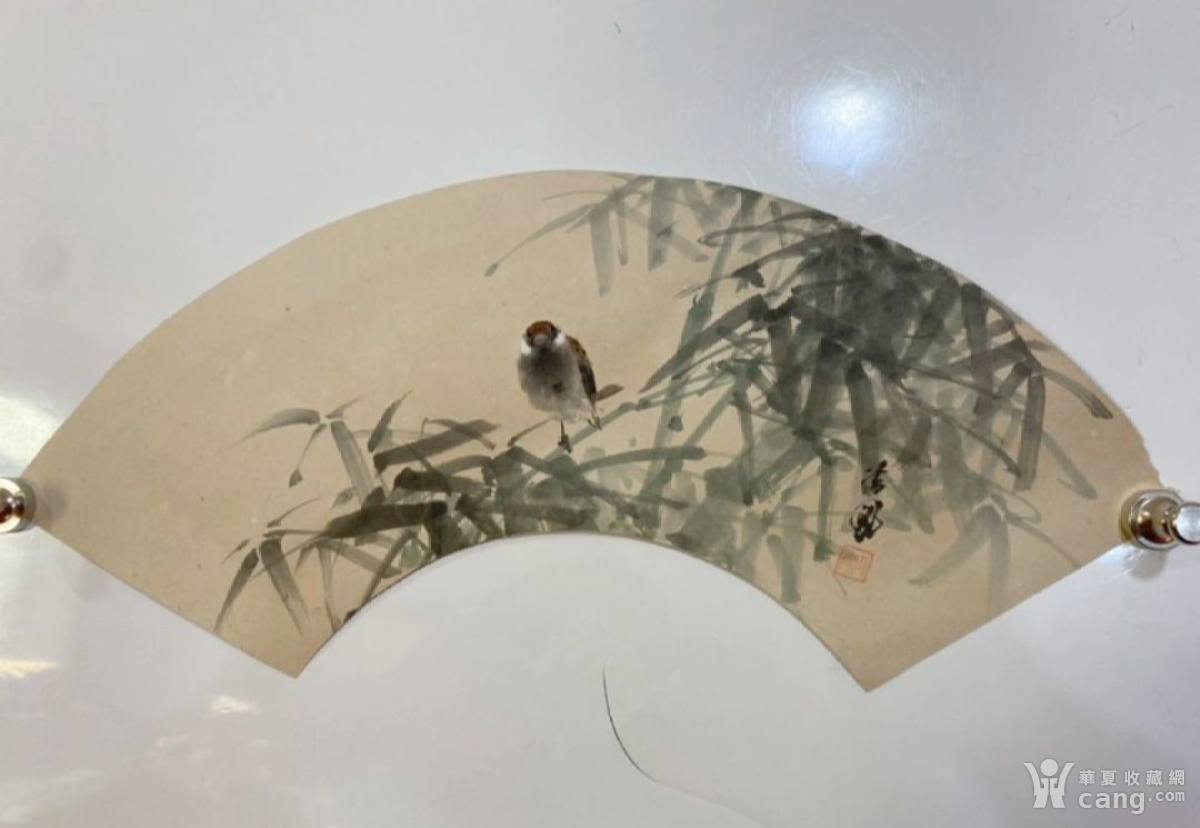 国画扇面竹鸟图