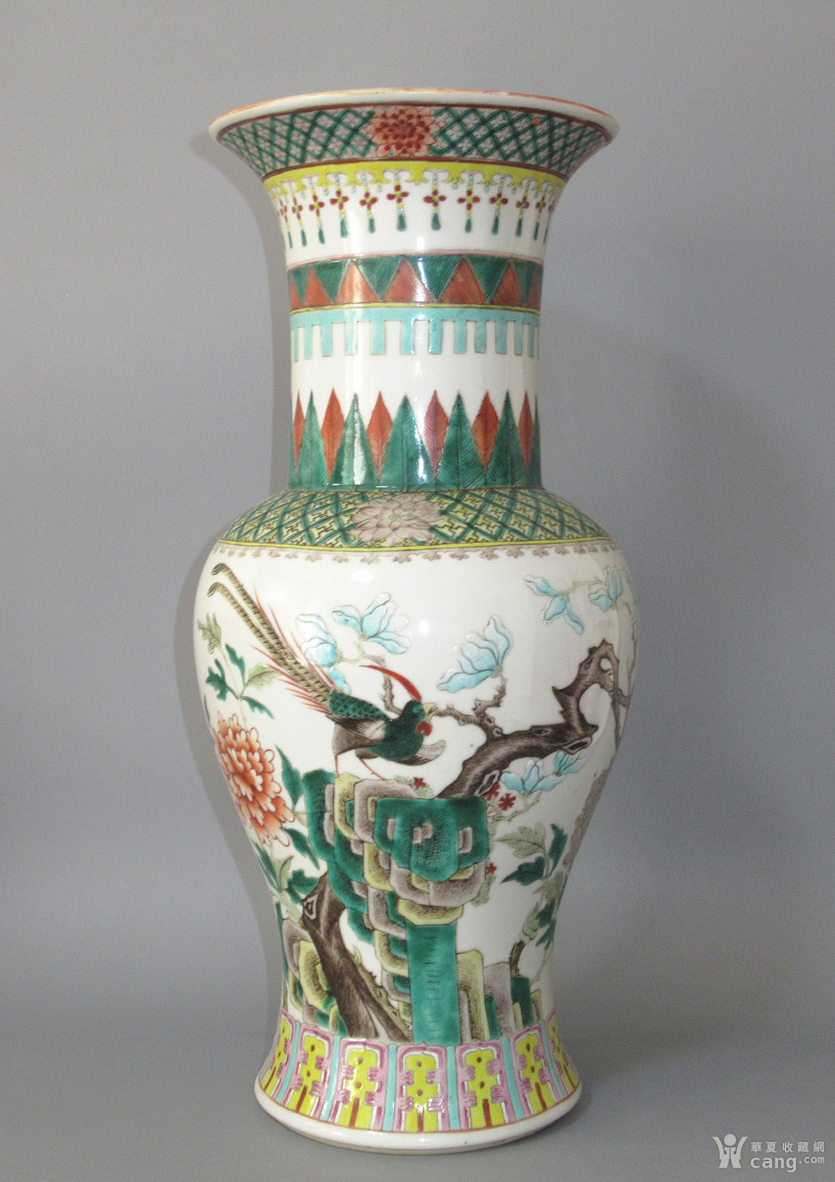 清光绪 五彩 雉鸡牡丹纹凤尾尊