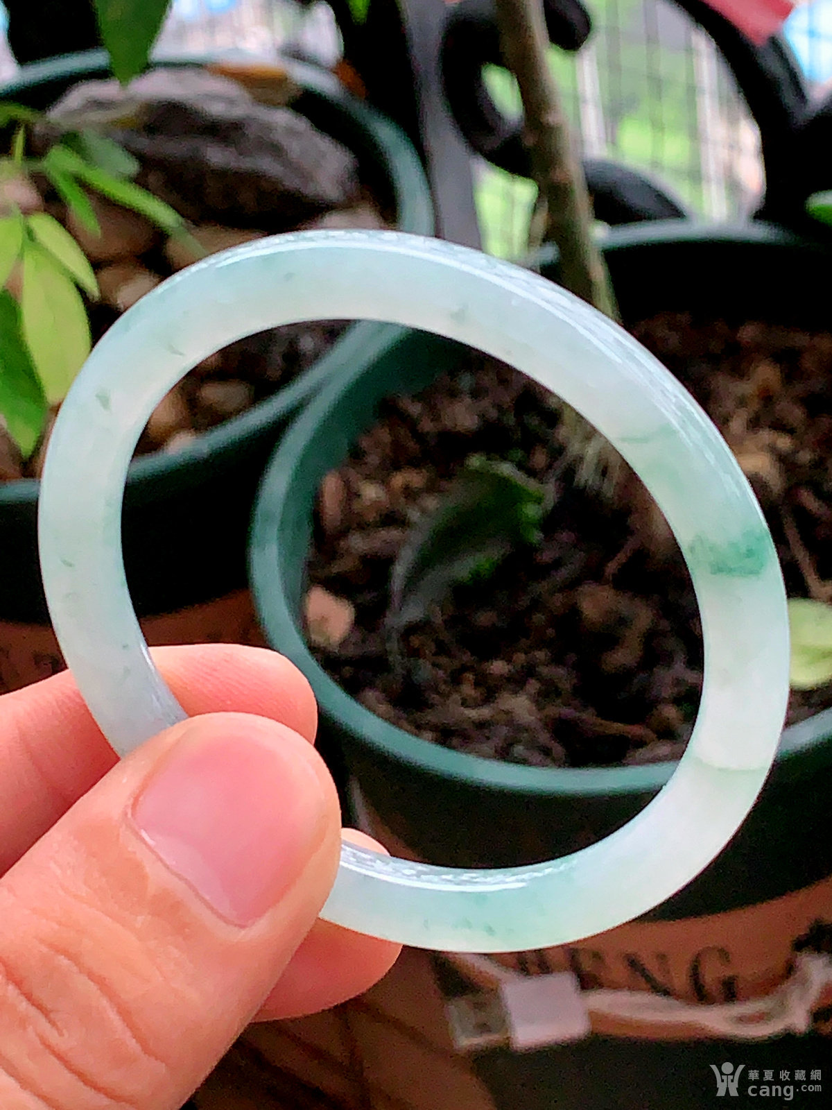 缅甸天然翡翠A货冰透水润飘花圆条手镯53.2圈口