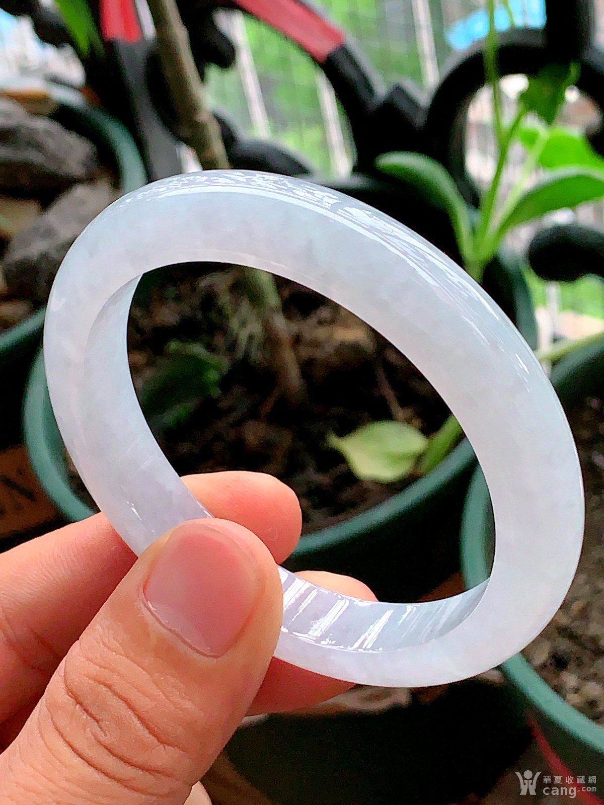 缅甸天然翡翠A货冰透水润宽边手镯59.8圈口