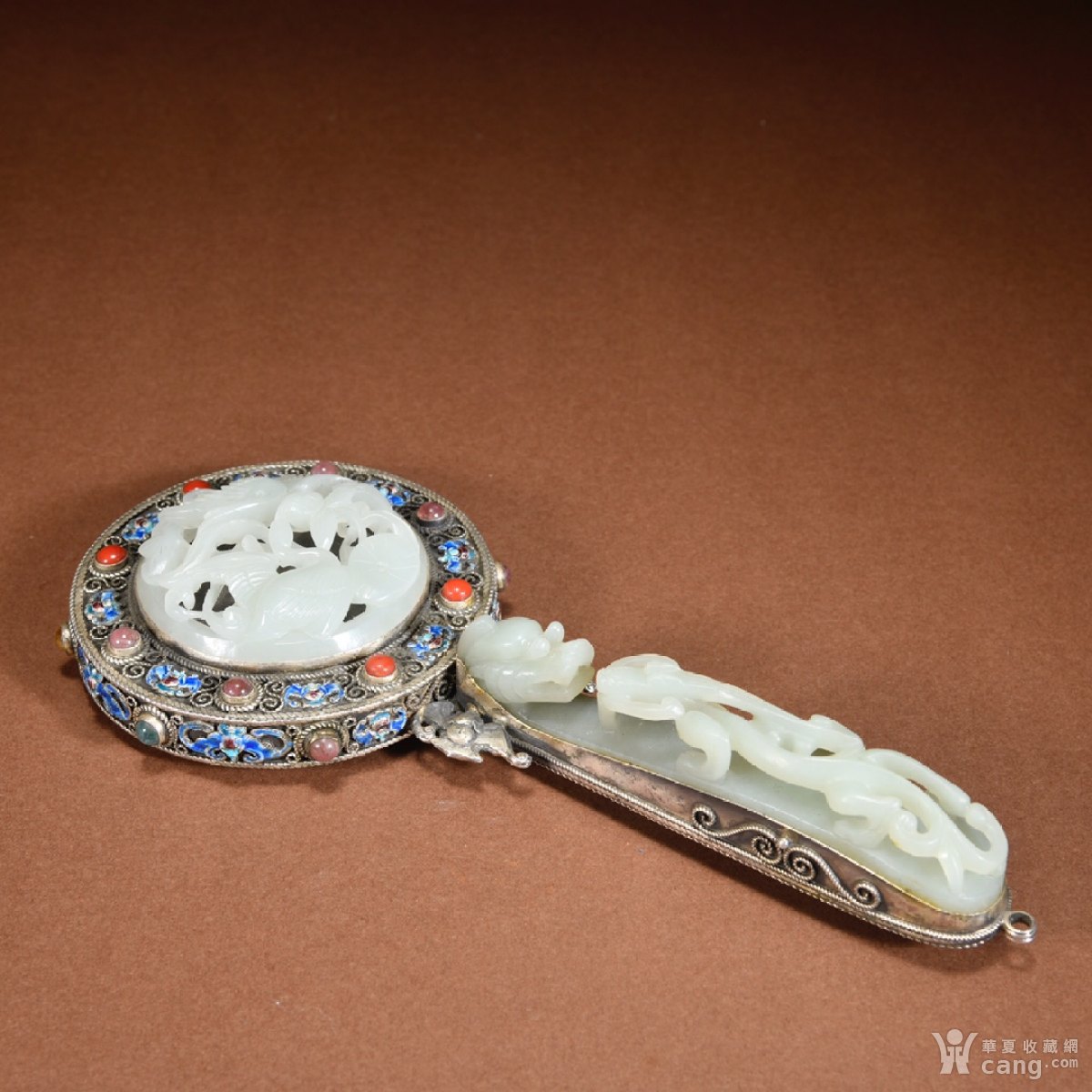 回流·纯银烧蓝镶和田白玉龙纹手持镜
