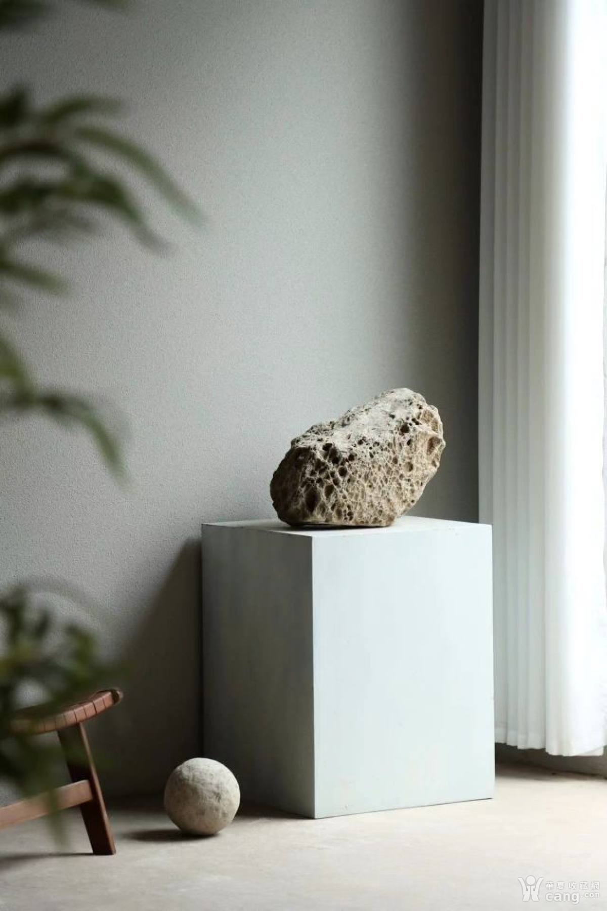 茶室雅玩 • 案陈赏石 其石瘦峭 鼓皱有致 洞穴皆具 色极