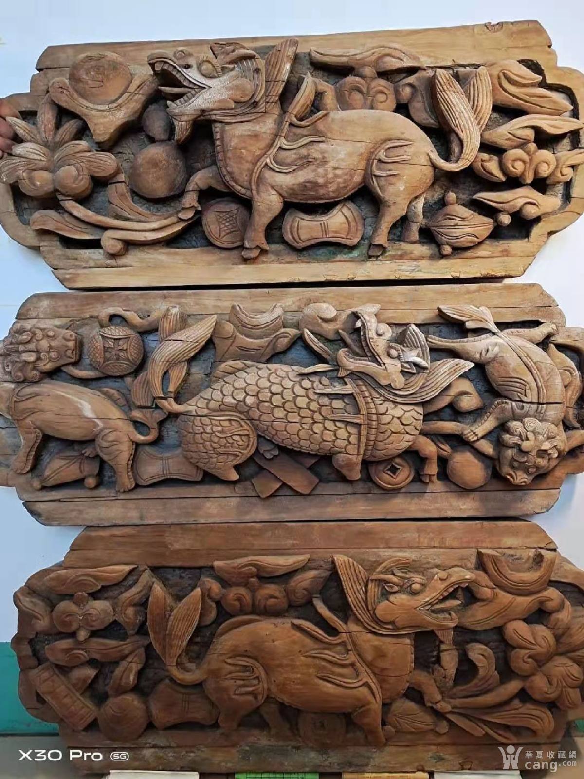 明代三块一套木雕