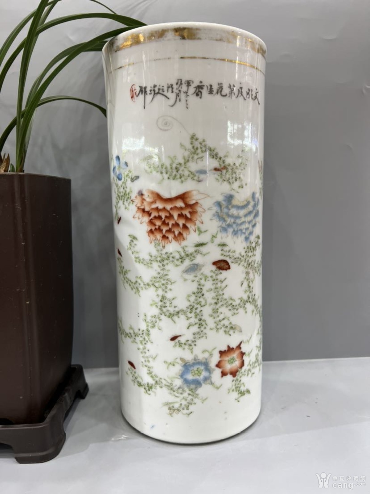 民国粉彩花卉帽筒
