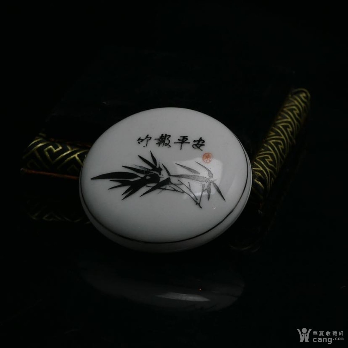 欧洲回流创汇期竹报平安诗文纹印泥盒