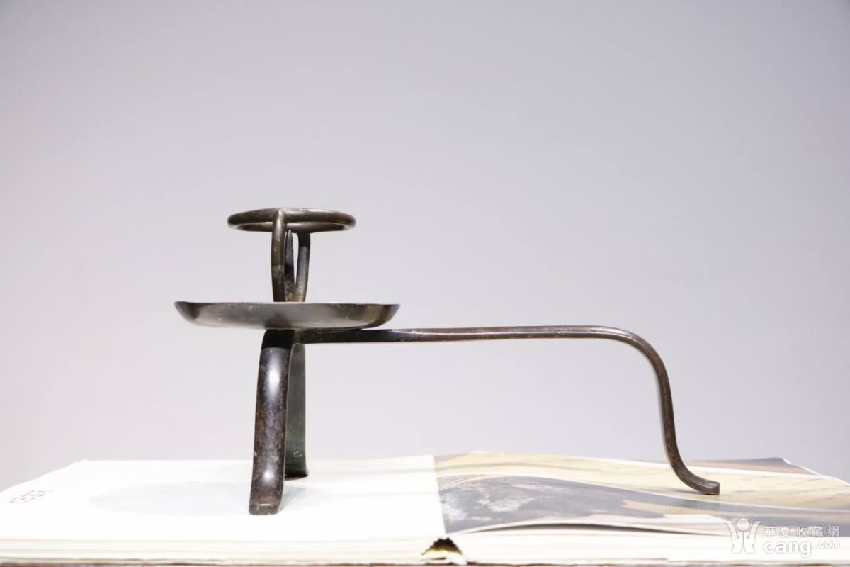 案置器 —— 行灯; 器为铜制 长 28厘米。圆口盘