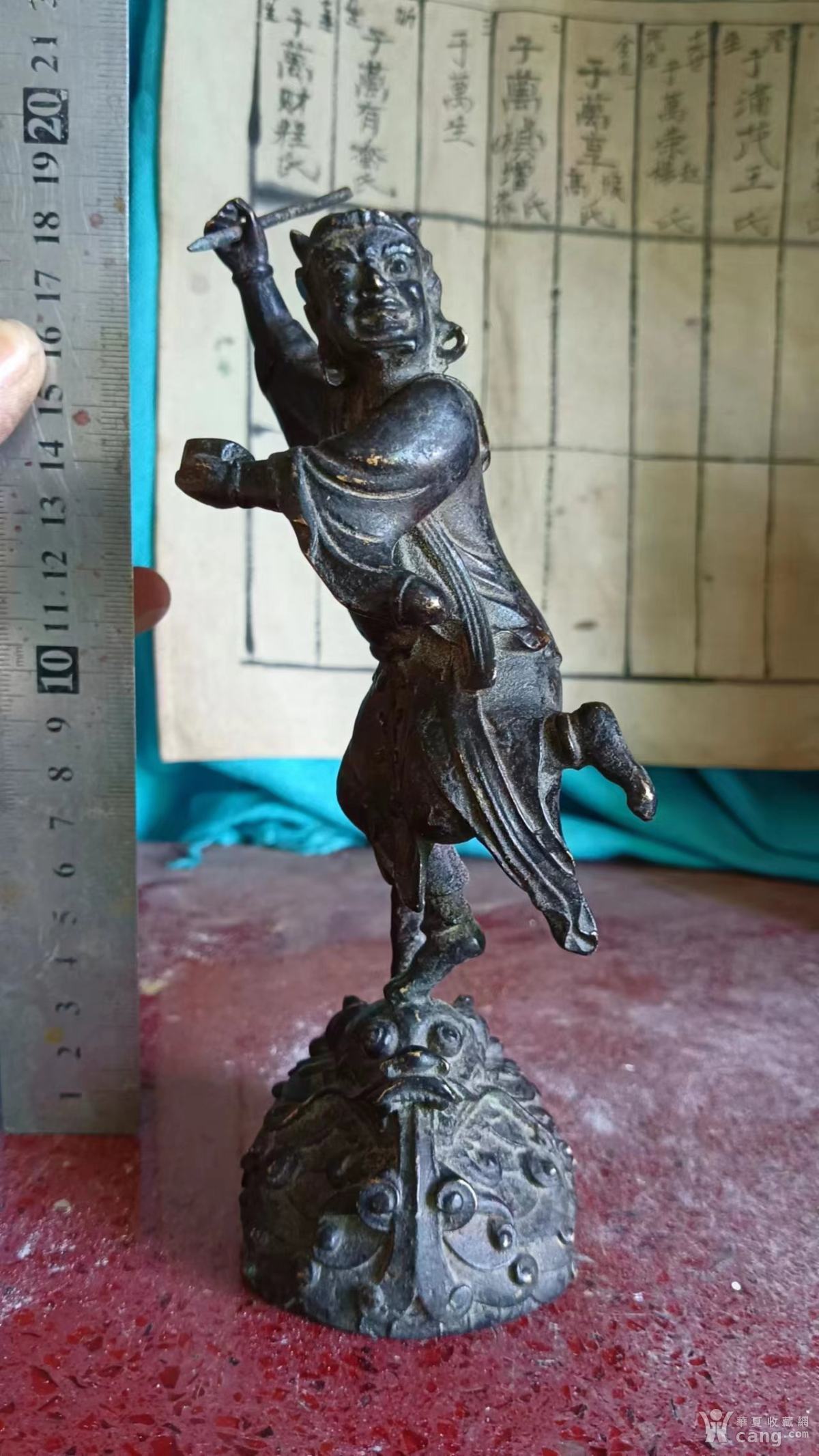 高19长7宽7厘米,1.5斤,完整老铜雕魁星点斗踢斗独占鳌头