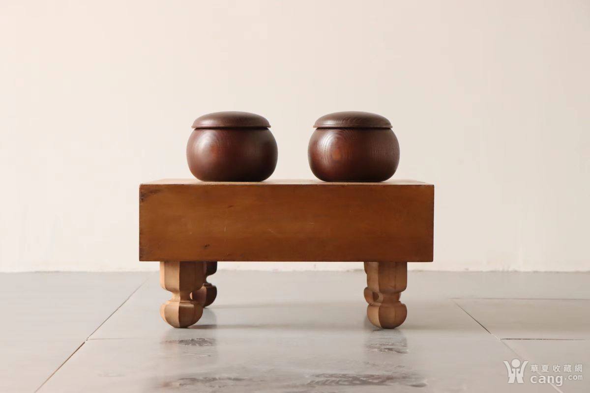 【围棋桌一套】 榉木围棋罐,罐一木整挖,皮壳油亮包浆厚重,浑