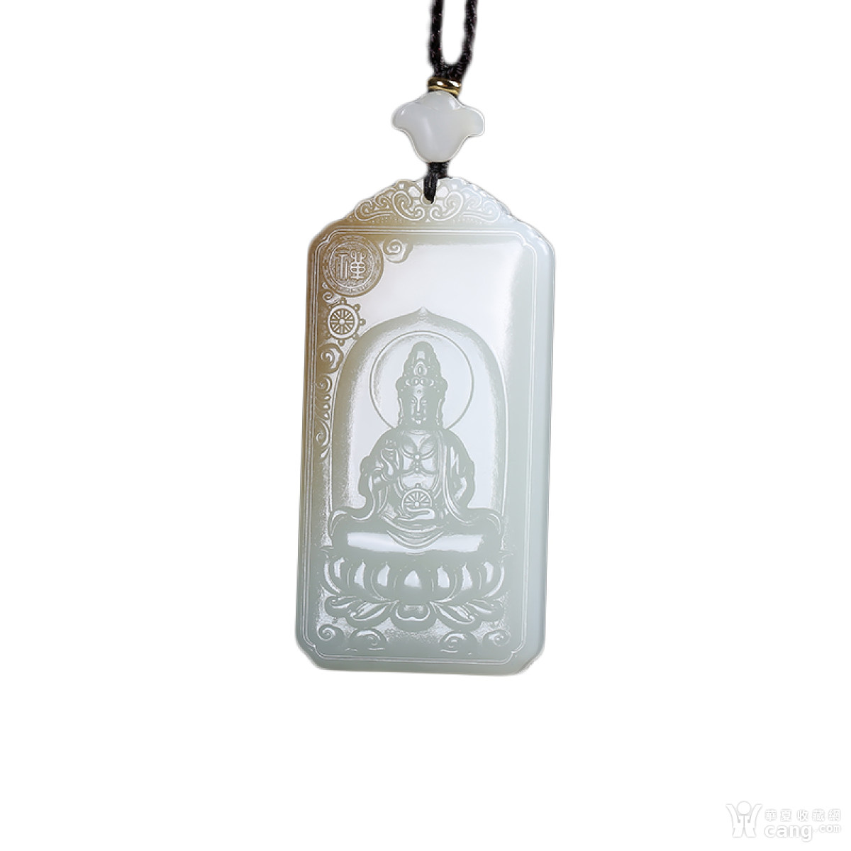 [羊脂白玉]和田玉糖白玉普渡众生观音莲花仿古牌子44.33g