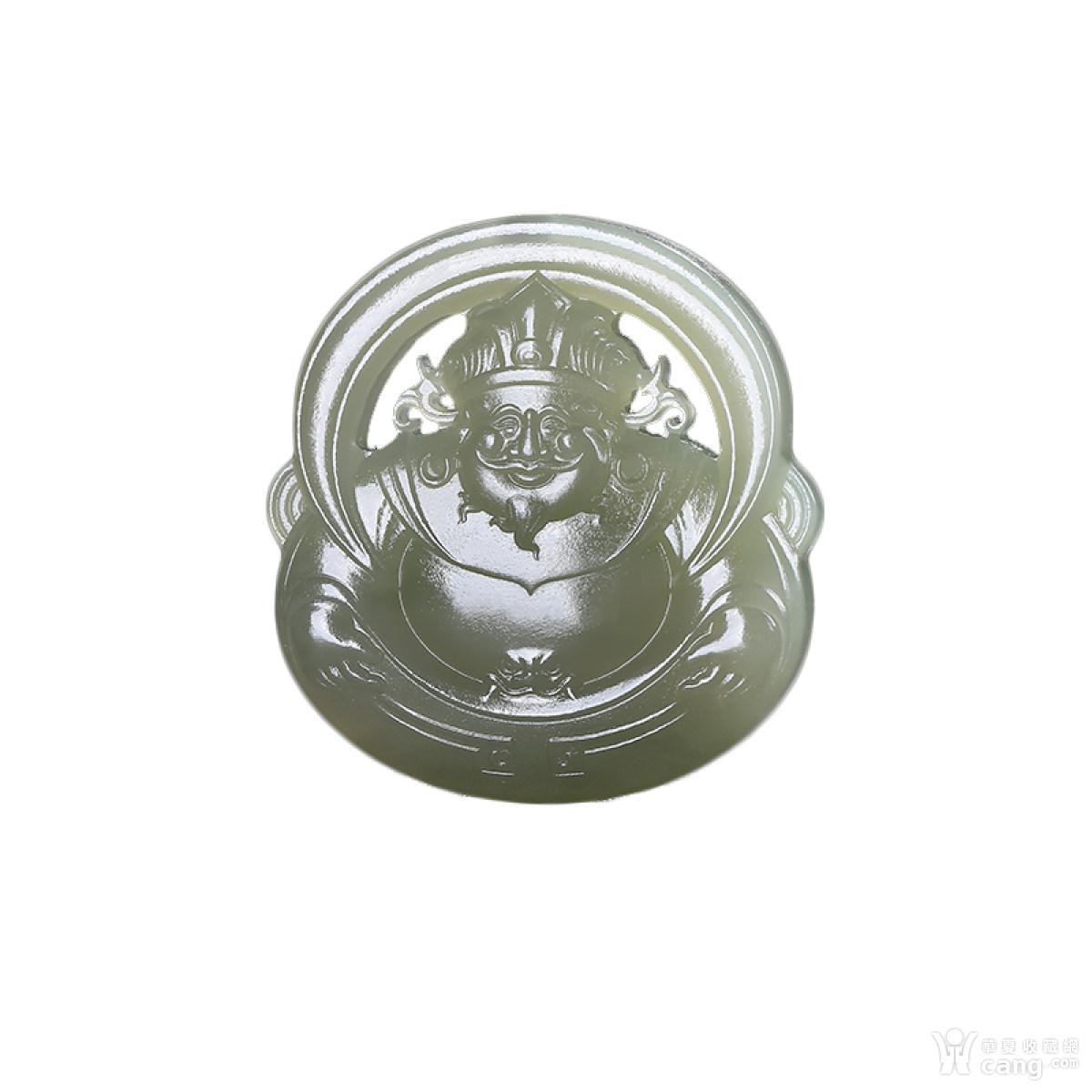[招财进宝]和田玉青白玉油青镂空财神挂件吊坠53.59g