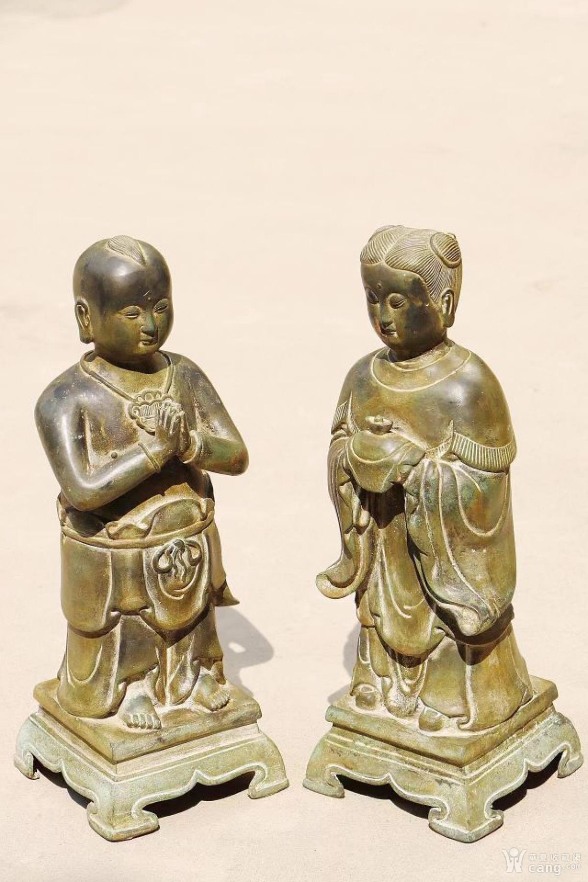 善财童子一对 铜 高35 底座12见方 开脸相当到位