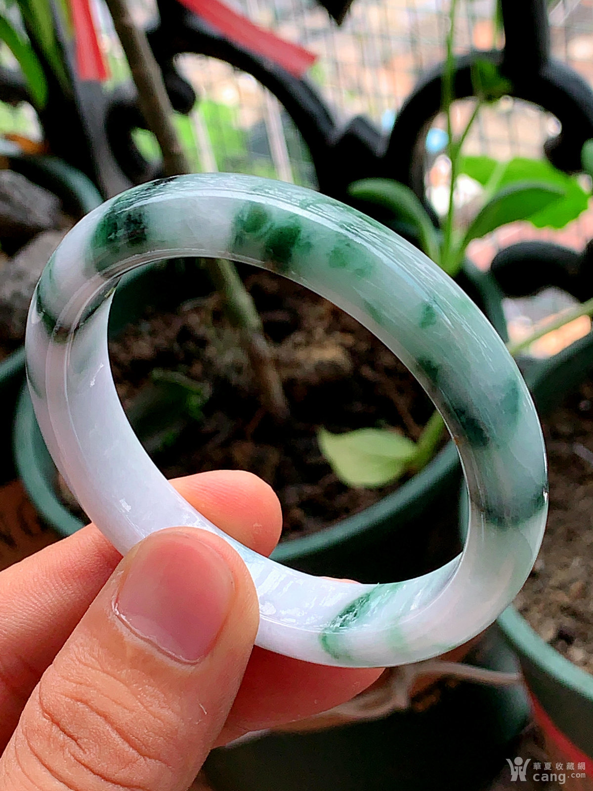 缅甸天然翡翠A货冰润飘花宽边手镯56.3圈口