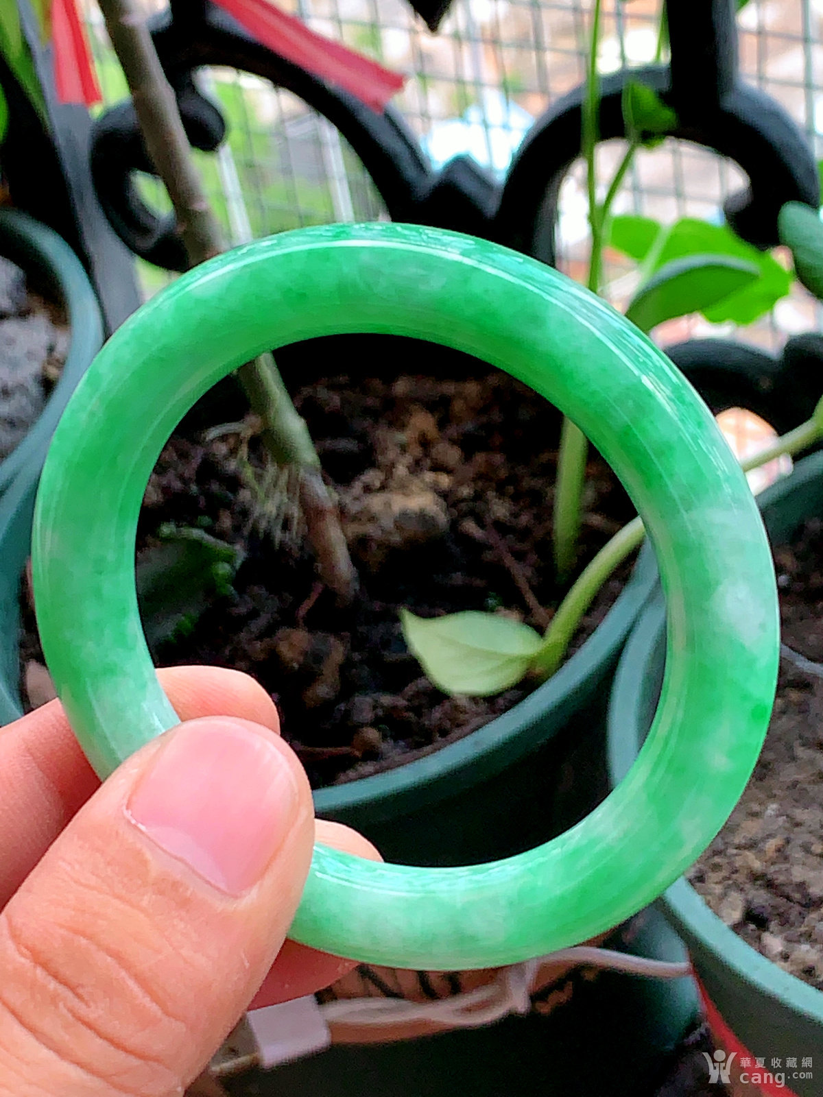 缅甸天然翡翠A货冰润飘花圆条手镯55.6圈口